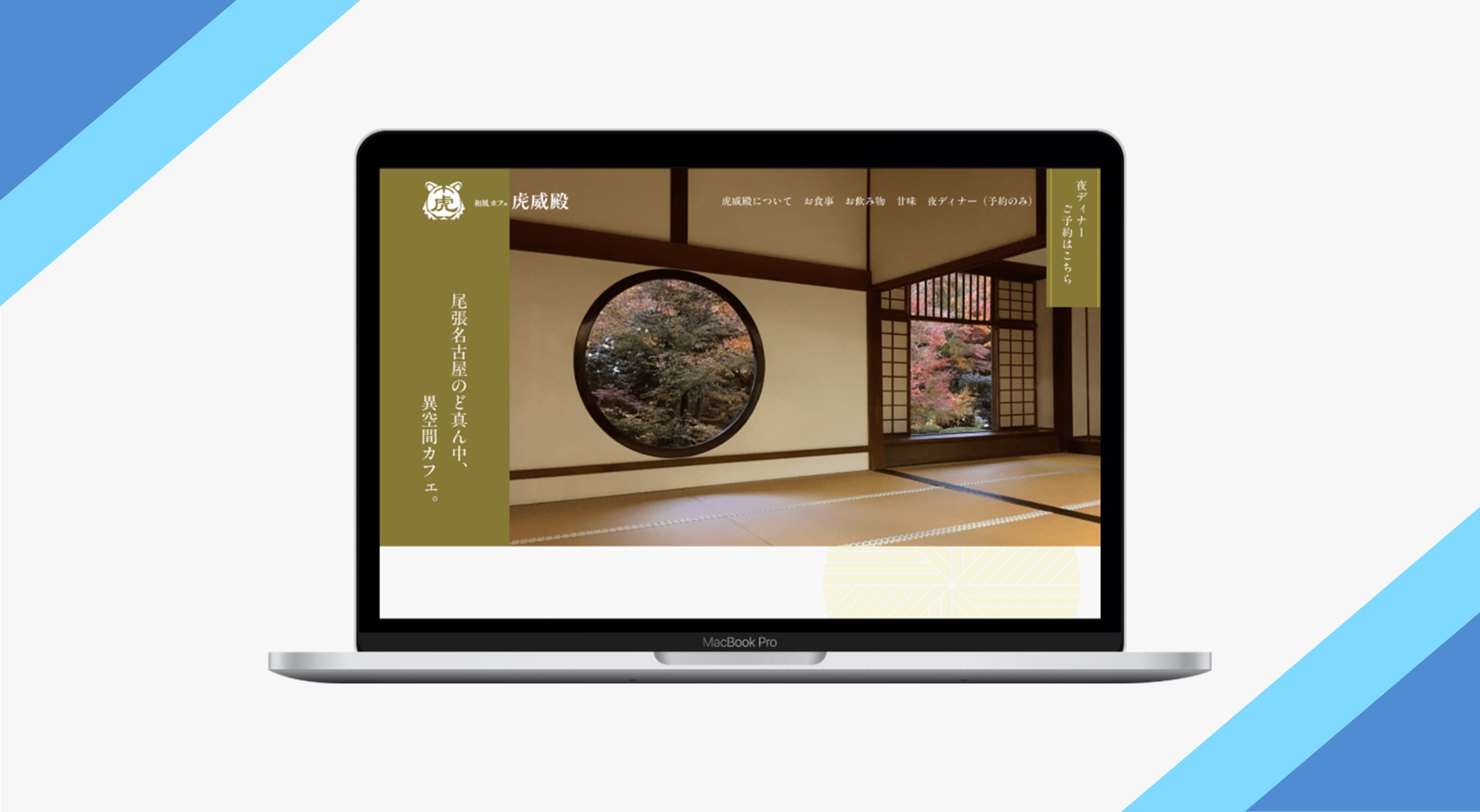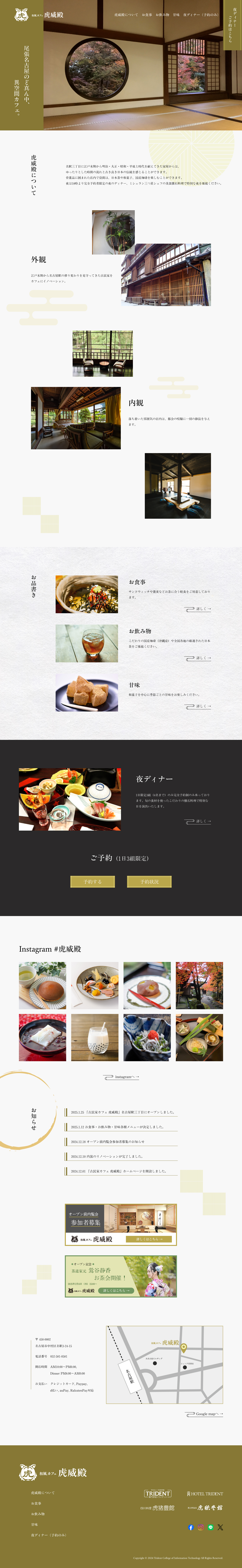 和風なデザインを考えてデザインするという課題だったので、デザインに取り掛かる前に実際にある和風な雰囲気のサイトをたくさん調べました。その結果、縦書きで目立つような見出しが多いこと、余白がしっかりと取ってあること、高彩度の色はあまり多用されていないことがわかり、これらを意識してデザインを作っていきました。アクセントカラーには黄海松茶という伝統色を使用し、食材の画像が多いため青系などの寒色を使わないように意識しました。